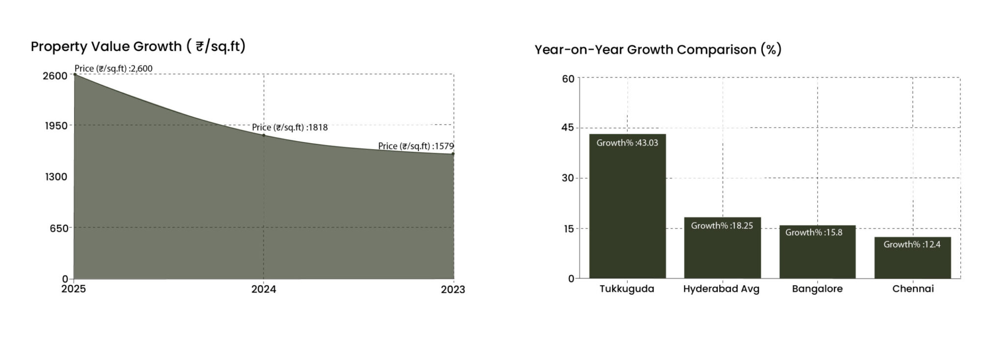 Madikonda has demonstrated remarkable price appreciation, outperforming nearby areas and providing exceptional returns for investors.